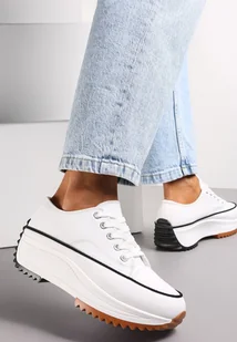 Białe Sznurowane Trampki Przed Kostkę Na Platformie Camely - Renee