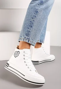 Białe Sznurowane Trampki za Kostkę z Naszywką z Napisem i Grubą Podeszwą Bretva - Renee
