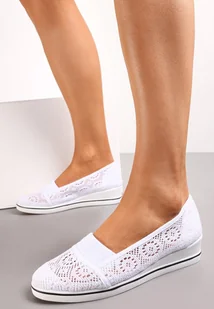 Białe Tenisówki z Ażurowej Siateczki na Niskiej Koturnie Nerurae - Renee