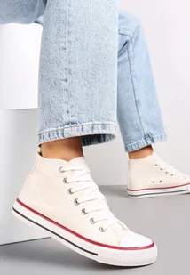 Białe Cyrkoniowe Trampki na Płaskiej Podeszwie z Wysoką Cholewką Isisea