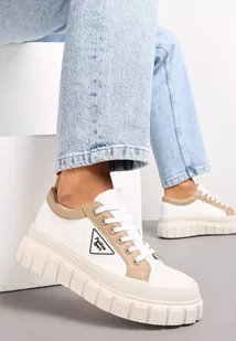 Białe Trampki na Platformie z Przeszyciami i Sznurowaniem Anaiza