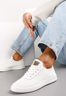 Biało-Złote Tenisówki przed Kostkę z Perforacją Rineli