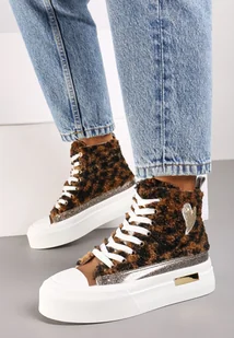 Brązowe Brokatowe Trampki na Platformie z Cholewką za Kostkę Nevirosa