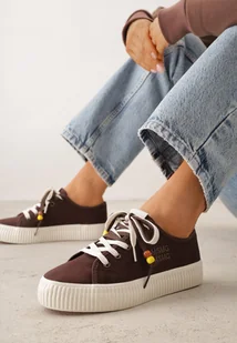 Brązowe Niskie Trampki z Podwójnymi Sznurówkami na Tłoczonej Platformie Astedella