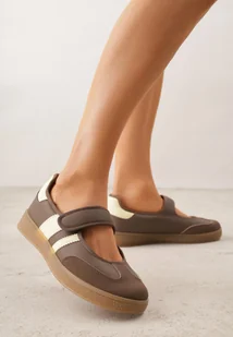 Brązowe Tenisówki w Stylu Balerinek z Zapięciem na Rzep Talwan