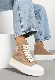 Futerkowe Trampki Aelinna to kwintesencja stylu połączona z komfortem. Platforma zapewnia stabilność i komfort noszenia, a sznurowanie gwarantuje doskonałe dopasowanie do stopy. Ozdobna naszywka w kształcie serca dodaje uroku i podkreśla indywidualny charakter obuwia. Idealne na co dzień w zestawieniu z casualowymi jeansami i oversizowym swetrem.