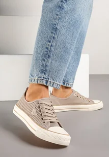 Ciemnobeżowe Szydełkowe Trampki o Klasycznym Fasonie Vovessa