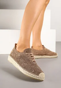 Ciemnobeżowe Tenisówki z Ażurową Cholewką i Plecionką Meverra