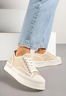 Ciemnobeżowe Trampki na Platformie z Metaliczną Ozdobą Afleeria