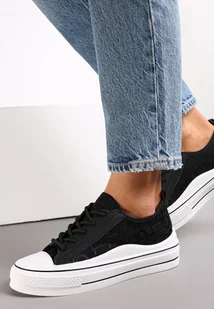 Trampki Ariu z cholewką przed kostkę. Osadzone na grubej podeszwie. Cholewka wykonana z połączenia materiału tekstylnego oraz ekoskóry i ozdobiona brokatem. Sznurowane trampki Ariu będą doskonałym wyborem do wiosennych i letnich stylizacji.