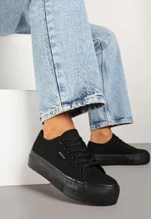 Czarne Klasyczne Trampki na Grubej Podeszwie Maireli