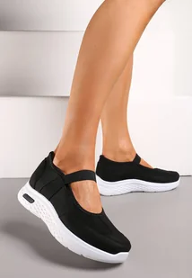Czarne Tenisówki na Płaskiej Podeszwie z Perforacją i Elastyczną Wstawką Xolema - Renee