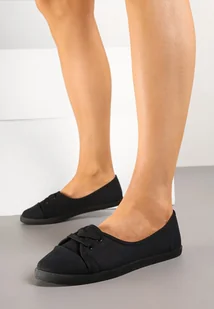 Czarne Tenisówki przed Kostkę z Ozdobnym Wiązaniem Telisiria