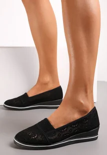 Czarne Ażurowe Tenisówki na Niskim Koturnie Nernirya