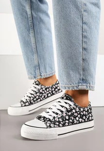 Czarne Trampki z Cholewką Zdobioną Kwiatowym Wzorem Folaianna