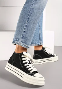 Czarne Trampki za Kostkę na Grubej Podeszwie Lisei - Renee