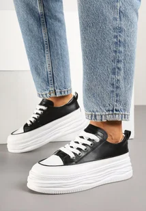 Czarno-Białe Streetwearowe Trampki na Tłoczonej Platformie Fellimi