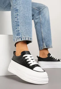 Czarno-Białe Trampki na Grubej Podeszwie z Tłoczeniami Tirlima