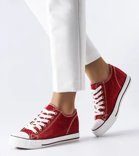 Czerwone brokatowe trampki na koturnie Crete - marka niezdefiniowana