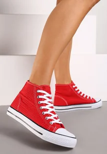 Czerwone Płaskie Trampki z Perforacją Yelagia
