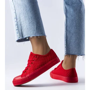 Numeracja standardowa, prosimy kierować się swoim rozmiarem. Czerwone trampki z tkaniny plecionej Thibodeau. Sprawdź na butymodne. pl! Trampki i tenisówki damskie marki Inna Marka must-have każdego sezonu w świetnej cenie. Promocje oraz darmowa dostawa.