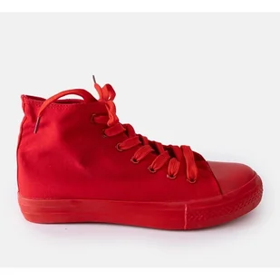 Czerwone wysokie trampki to obuwie na czasie, które zachwyca elegancją i stylem. Sznurowane, zapewniają idealne dopasowanie do stopy, a ich wysoka cholewka dodaje im wyjątkowego charakteru. Okrągły nosek sprawia, że są niezwykle wygodne, a wykonane z gumy podeszwy gwarantują stabilność i komfort podczas noszenia. Krój tych trampków jest perfekcyjnie dopracowany, co sprawia, że będą doskonałym uzupełnieniem każdej stylizacji. Czerwone wysokie trampki Rafife.