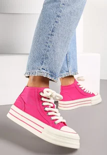 Różowe Trampki na Wysokiej Platformie z Cholewką za Kostkę Anlitela
