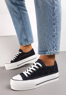 Granatowe Trampki na Ozdobnej Platformie ze Sznurowaniem Moonoria