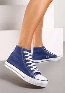 Granatowe Klasyczne Trampki za Kostkę ze Sznurowaniem Hulagia