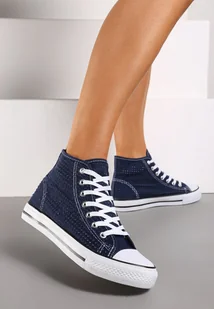 Granatowe Płaskie Trampki z Perforacją Yelagia