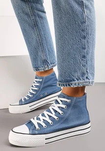 Granatowe Trampki za Kostkę Stylizowane na Jeansowe Zoriva