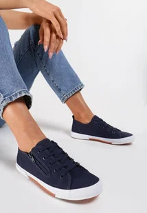 Tenisówki Salodella z cholewką udekorowaną zapięciem na zamek błyskawiczny po boku. Sznurowane, z delikatnymi przeszyciami i okrągłym noskiem. Na płaskiej podeszwie - na środku wstawka w innym kolorze, z przodu i z tyłu z ozdobnym żłobieniem. Wykonane z materiału tekstylnego. Dodasz nimi sportowego akcentu stylizacjom!