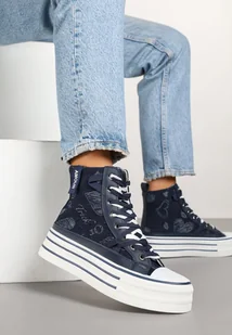 Granatowe Trampki Jeansowe z Serduszkami na Platformie Benirea