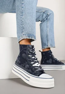 Granatowe Trampki na Platformie z Wysoką Cholewką i Wzorem Serc Aviriss