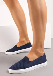 Granatowe Wsuwane Tenisówki Ozdobione Wstawką z Ekoskóry na Zapiętku Eliriaba