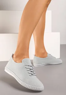 Jasnoniebieskie Krótkie Tenisówki z Perforacją i Klasycznym Sznurowaniem Viraga