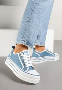 Jasnoniebieskie Trampki na Platformie Ozdobione Cyrkoniami Arenoria