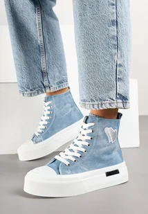 Jasnoniebieskie Trampki na Platformie z Wysoką Cholewką z Haftem z Brokatem Elanitha