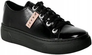 Nessi 23417 czarne trampki damskie sportowe skóra lakierowana
