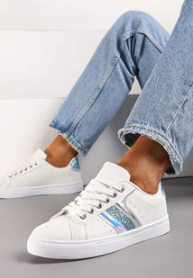 Biało-Niebieskie Casualowe Sneakersy z Brokatem i Metalicznym Zdobieniem Tidalis