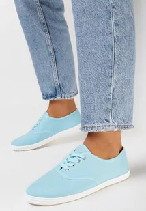 Niebieskie Tenisówki na Płaskiej Podeszwie ze Sznurowaniem i Okrągłym Noskiem Ezoma