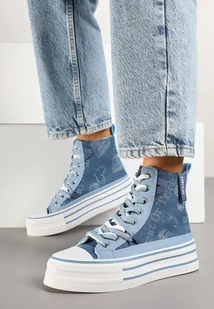 Niebieskie Trampki Jeansowe z Serduszkami na Platformie Benirea