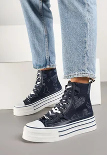 Granatowe Trampki na Grubej Podeszwie w Serduszka za Kostkę Umirana