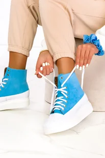 Niebieskie trampki na platformie wysokie sznurowane polska skóra Casu 3034-0