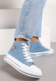 Jasnoniebieskie Trampki za Kostkę Ozdobione Małym Haftem Terilas