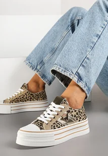 Panterkowe Trampki na Platformie Ozdobione Metaliczną Aplikacją Telanoreta - Renee