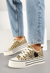 Panterkowe Trampki na Platformie z Ozdobnym Napisem i Aplikacją Efena