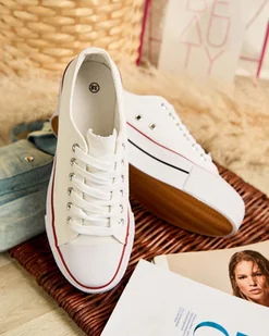 Stylowe sportowe trampki damskie wykonane z materiału tkaninowego. Model na wygodnej platformie. Cholewka jest sznurowana. Świetne do tworzenia casualowych o...