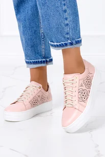 Różowe trampki creepersy ażurowe sznurowane POLSKA SKÓRA Casu 3142