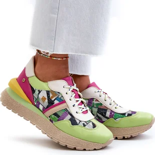 Najnowszy model półbutów damskich w kolekcji wiosenno-letniej od Maciejki, to niebanalna propozycja dla każdej modnej i ceniącej sobie wygodę kobiety. Cholewka została wykonana ze skóry naturalnej w kolorze zielonym z różowymi akcentami. Boki półbutów ozdobione charakterystycznym błyszczącym wzorem. Dzięki zastosowaniu sznurowadeł można dostosować ją do tęgości stopy według własnych potrzeb. Wnętrze i wkładka wykonane są ze skóry naturalnej.